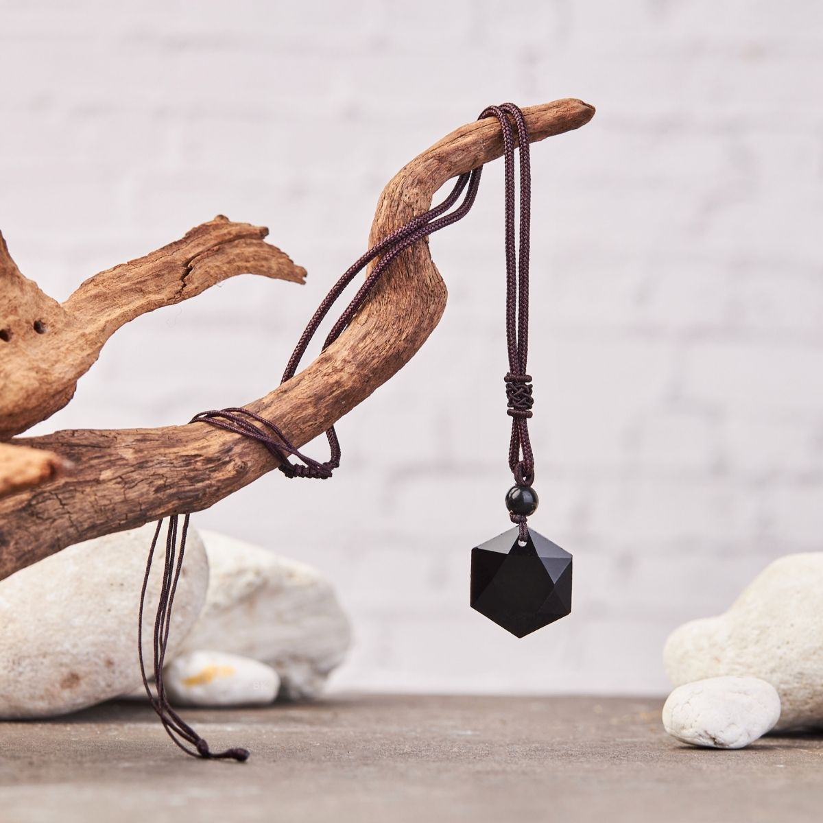 When worn as a necklace, black obsidian acts as a talisman against negative energy.